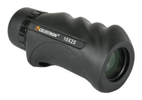 Monocularele Celestron sunt instrumente optice extrem de portabile ce pot incapea in orice buzunar. Realizate din sticla optica de inalta calitate acoperita antireflex multistrat si prisme Bak4, la fel ca seriile de binocluri al caror nume il poarta, monocularele Celestron permit observatii cu un singur ochi la puteri de marire intre 6X si 10X la natura, pasari, sport, concerte, evenimente in aer liber si vanatoare. Toate modelele sunt umplute cu azot pentru a preveni aburirea lentilelor si sunt protejate la apa pentru a rezista in conditii umede. Corpul este acoperit cu cauciuc pentru protectie la socuri. Fiecare monocular are o husa pentru protectie si transport.